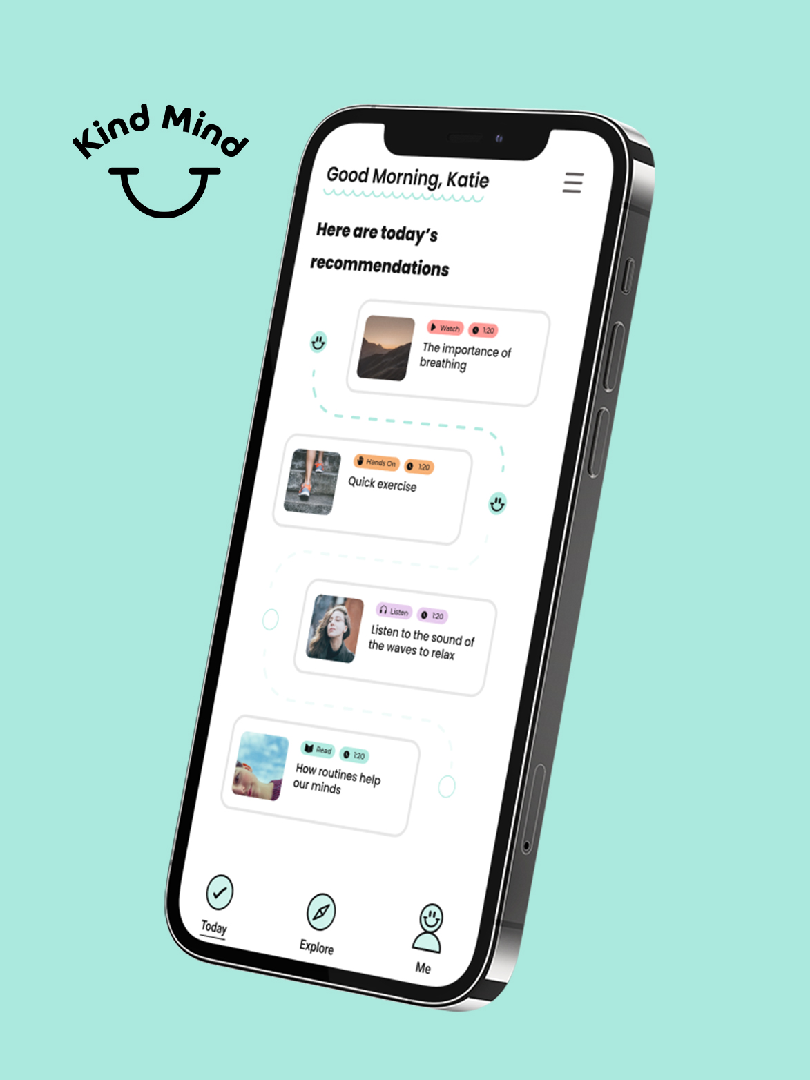 The target audience for Kind Mind is everyone of working age in any profession meaning with such a broad demographic the user interface and experience needed to be easy to use and the content easy to digest.